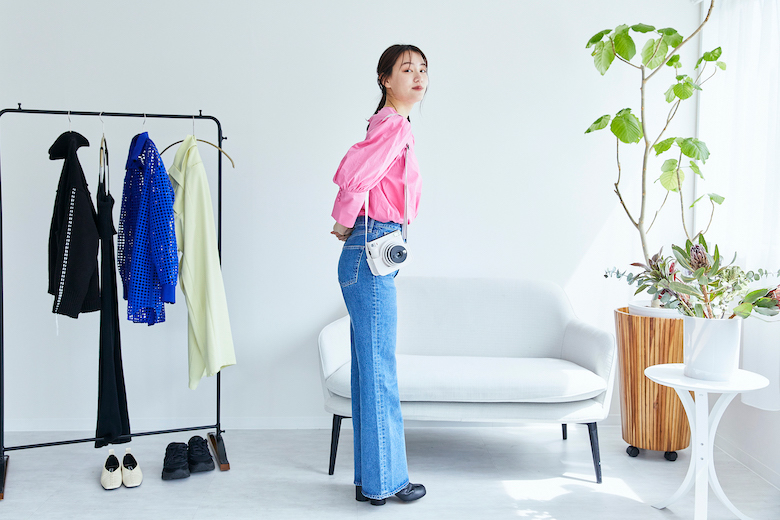 ▲photo 「柳瀬美央が着こなす、チェキ™×コーディネート。instax mini Evo™を持ち歩く秋冬スタイル」